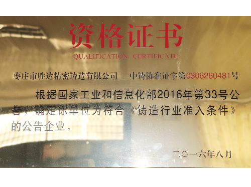 您所在的位置:山東鑄造廠 - 關(guān)于勝達(dá) - 榮譽(yù)資質(zhì)
